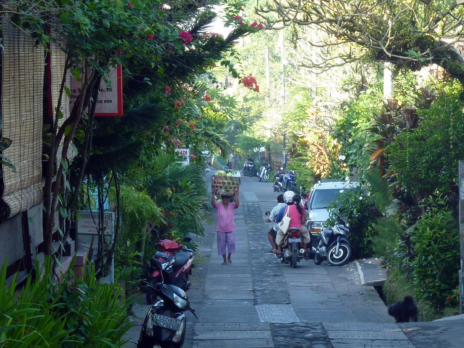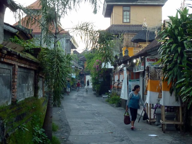 Schließlich kam ich zu einer äußerst einladenden Straße namens Jalan Kajeng. Eine nicht zu große und auch nicht zu kleine Straße (soll heißen, ich konnte dort normal gehen ohne andauernd zur Seite springen zu müssen, wenn die Mopeds kamen) mit ganz vielen kleinen hübsch zurechtgemachten Guesthouses.