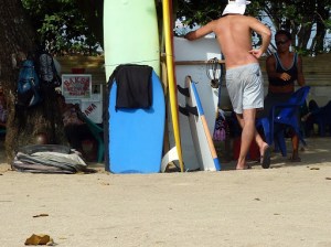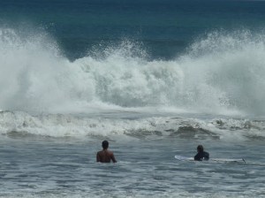 Dort erwarteten uns (ganz im Gegensatz zu gestern) ca. 4 – 5 Meter hohe Wellen und ein Surflehrer (ich weiß den Namen von dem Typen immer noch nicht), der Wache auf „unserer“ Liege hielt, damit sich niemand anderer diese schnappt ;). Fand ich ja fast ein wenig rührend! Großes Hallo und ein fast entrüstetes „Where have you been?“ Entschuldigung, wir waren durch die Shoppingtour halt 2 Stunden später als sonst …