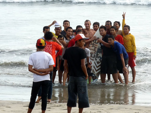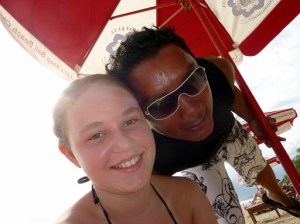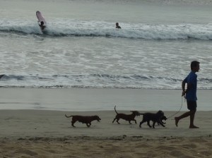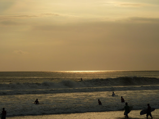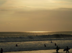 Eigentlich wollte ich noch nach Chucks für mich gucken, aber leider haben meine netten Indonesier das weder in dem einen noch in dem anderen Laden hinbekommen. Weder mit der Farbe (weinrot) noch mit der Größe (8,5). Es wurde zwar quer durch die Stadt gefahren, aber das Ergebnis war beide Male gleich. Vorgelegt wurden Chucks in knallrot in Größe 7. Wahrscheinlich hatten beide Geschäfte den gleichen Dealer und waren auch noch miteinander verbandelt … Mir ging dieses permanente „come in my shop, come in my shop“ auf der Jl. Legian da schon mächtig auf den Geist und Hannah war sowieso glücklich, weil sie ihren Bob Marley Bikini in ihrer Billabong-Tasche hatte. Also – 2 Mädels, ein Gedanke – ab zum Beach!
