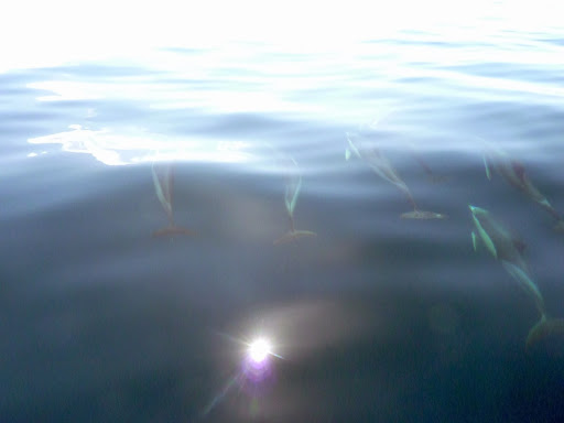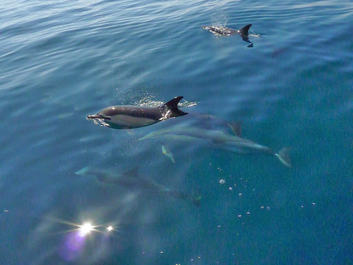 Sie sind eine ganze Zeit lang um unser Boot „gehüpft“, in der Bugwelle mitgeschwommen und hatten augenscheinlich auch recht viel Spaß an der ganzen Geschichte. Keine Ahnung, ob die Fotos was geworden sind, ich habe irgendwann auf „Serie“ gestellt und muss die knapp 400 Bilder erst einmal sichten ;). Auf den meisten wird wohl nur Wasser zu sehen sein. Ehrlich gesagt war mir auch nicht bewusst, dass „Serie“ so viele Bilder bedeutet. Ich dachte, nach 3 oder 4 Stück ist Schluss, ist aber augenscheinlich nicht so. War etwas irritiert, als ich mir die Bilder abends anschauen wollte. Muss ich defnitiv zu Hause am großen Rechner aussortieren, auf dem kleinen Bildschirm war mir das zu anstrengend. Und 2 Filme habe ich auch noch gedreht!
