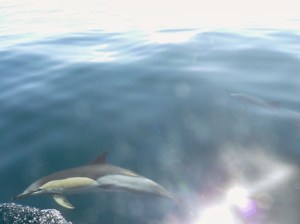 Dafür sind wir aber zum Schluss noch auf eine Gruppe von „gewöhnlichen Delphinen“ getroffen (die heißen wirklich so!). Und das war sooooo schön! Knapp 2 Meter große Tiere mit ein paar Jungtieren, die an der Seite gelbe „Striche“ haben. Hatte ich bisher noch nie gesehen, sondern immer nur die „normalen“ grauen.