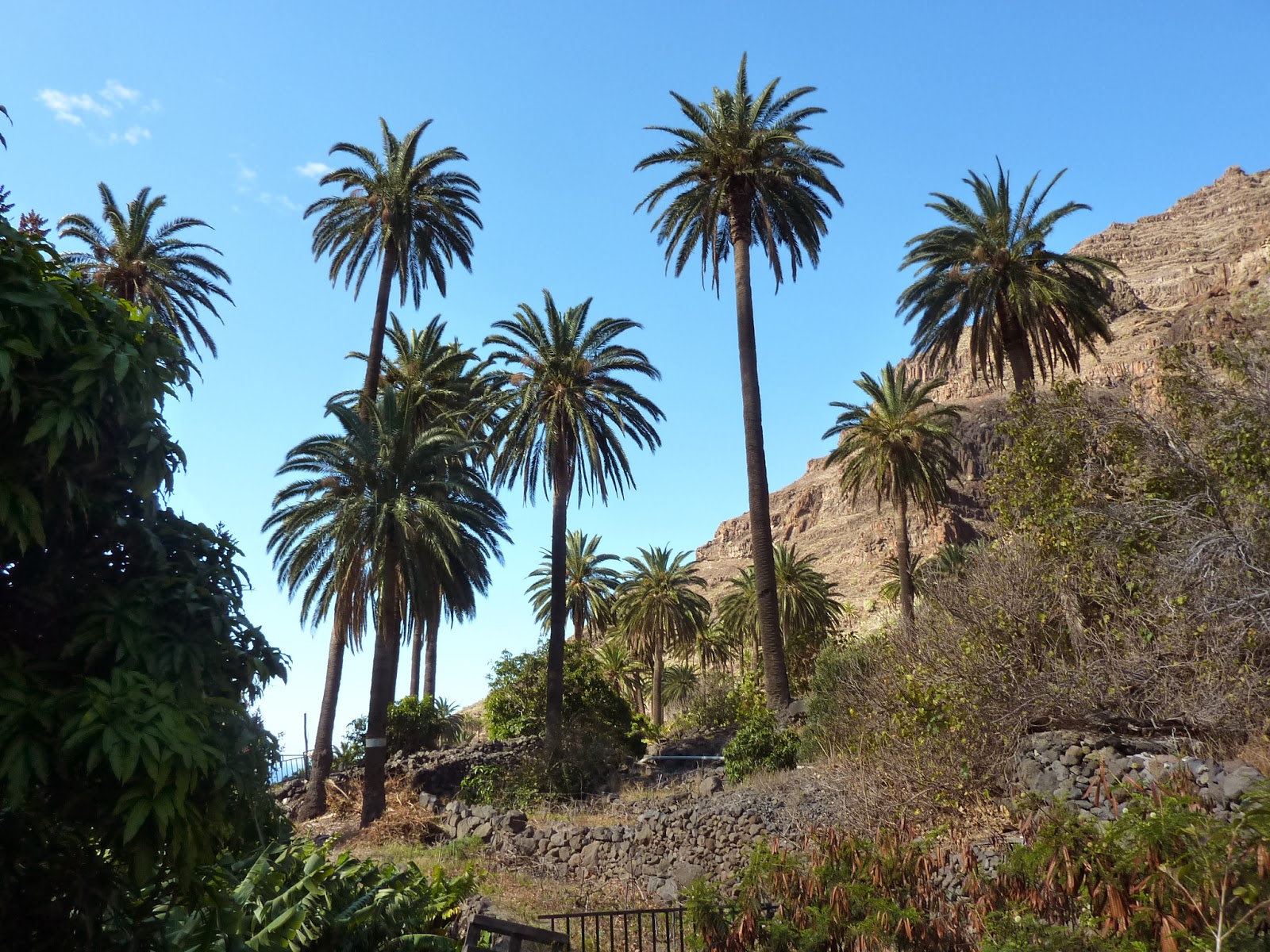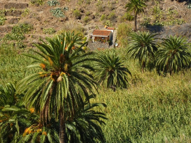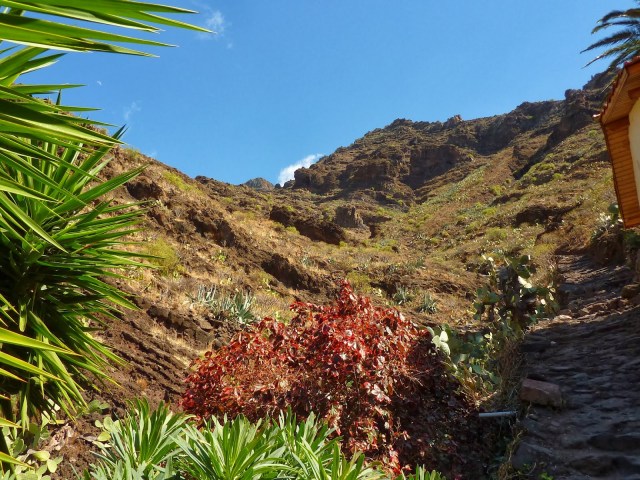 Ich habe mein Fahrrad am Busbahnhof angekettet und bin dann in den Barranco gestiegen. Stand in meinem Wanderführer! Hatte allerdings ein sehr ungutes Gefühl, da gerade wilde Baumaßnahmen mit Baggern, Lastern, Kränen etc. im Gange sind und überall Verbotsschilder standen. Soviel Spanisch verstehe ich dann doch … War aber dann kein Problem. Der erste Baggerfahrer, dem ich vor die Räder lief, hat mir zu verstehen gegeben, dass es kein Problem ist, wenn ich dort durch gehe. Habe kurz meinen Wanderführer zu Rate gezogen, gelesen, dass ich „immer mal wieder den Fluß überquere“ und bin hoch gewandert. Ich habe die ganze Zeit zwar keinen Fluß überquert, aber wenn die Autoren das sagen …