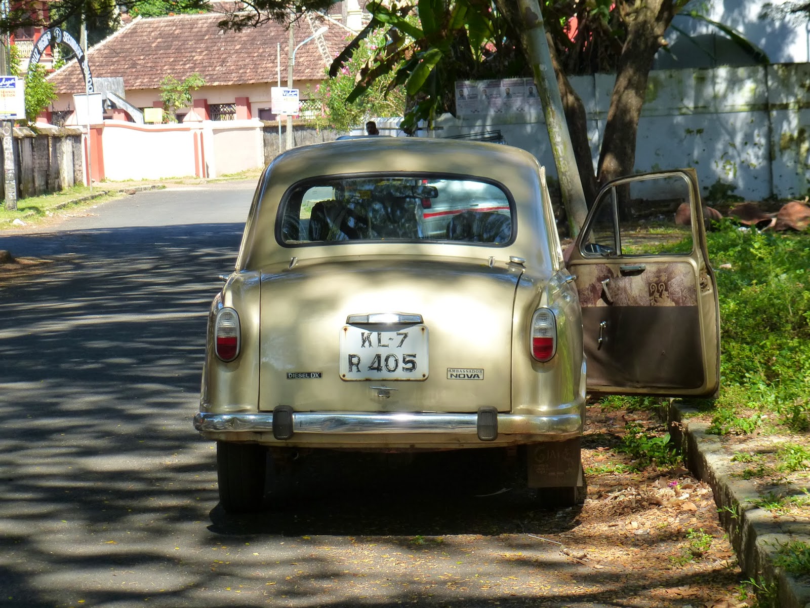 Danach lief dann aber alles glatt. Unser Fahrer vom Guesthouse stand mit Namensschild vor der Tür und ab ging es nach Fort Cochin. 45 km und 1,5 Stunden Fahrt – auf einer gut ausgebauten Straße wohlgemerkt. Uns war das schnuppe, wir hatten Zeit zum Gucken und haben gewettet, wer wohl die erste freilaufende heilige Kuh auf der Straße sieht. Gewonnen habe ich – obwohl das Vieh dann doch eher angeleint als freilaufend war. War wohl doch keine heilige Kuh …