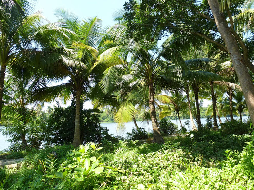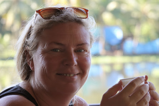 Heute waren wir in den Backwaters. Für mich einfach so beseelend, dass ich sogar ein paar Tränen verdrücken musste auf meinem schönen Boot. Wir sind frühmorgens abgeholt worden, fast zu früh, ich hatte mich eigentlich noch auf einen entspannten Tee und eine Zigarette auf dem Balkon mit Blick auf „meine“ Straße eingerichtet. Im Auto saß noch ein junges Pärchen aus Holland, das eigentlich genau die Tour machen will, die ich ursprünglich anvisiert hatte (Wayanad, Mysore, Hampi, Goa). Sie haben 5 Tage länger Zeit als wir, das macht ja schon mal viel aus. Außerdem wollen sie die Nachtzüge für die Fahrten nutzen (3. Klasse, weil günstig – vielleicht wissen sie nicht, dass sie das Abteil dann mit 40 anderen Leuten teilen müssen) und sind ungefähr 25 Jahre jünger als ich ….