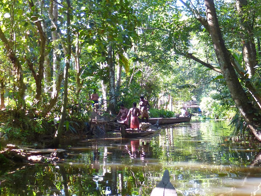 Weiter ging es mit einem Bus noch ein Stückchen weiter rein in die Backwaters. Nächster Stopp war ein kleines Dörfchen mittendrin im Nirgendwo. Dort warteten 2 Kanus auf uns und wir hatten dann noch eine kleine „Kanalrundfahrt“.