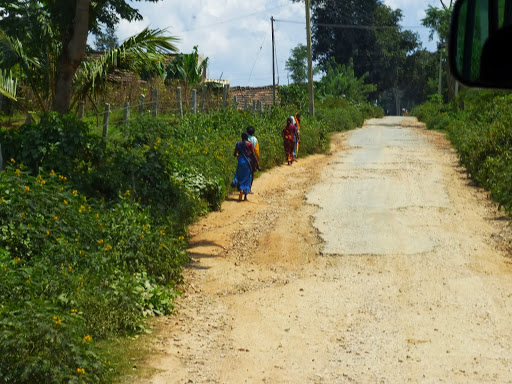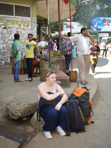 Das „Ticket-am-Schalter-Kaufen“ hat allerdings einen großen Vorteil, nämlich den, dass einem irgendwelche Leute sagen, wo man sich anstellen muss, um den Bus zu bekommen. Hier gibt es das nicht. Es gibt auch keine Lines oder ähnliches, die Busse kommen in halsbrecherischem Tempo von der Straße auf den Parkplatz gerauscht, alle Leute rennen los und wenn man Glück hat (jedenfalls als Touri, da man ja die Schilder an den Bussen nicht lesen kann) sitzt man im richtigen Bus. Wir haben schlussendlich auch nicht den direkten Bus nach Mysore erwischt, sondern den Bangalore-Bus, der in Mysore Halt macht.
