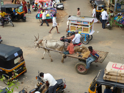 „Großstadt“ – für indische Verhältnisse aber ziemlich klein, nur 2 Mio. Einwohner :). Die Kühe latschen kreuz und quer auf den Straßen, die Busse fahren meiner Meinung nach ebenfalls kreuz und quer und von den Tuk Tuks, Mopeds und Fußgängern will ich mal gar nicht reden. Unser Guesthouse liegt ein wenig außerhalb (ca. 10 Minuten per Tuk Tuk in die Innenstadt) in einer kleinen Straße.
