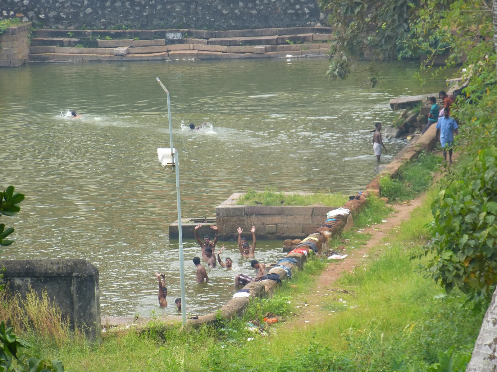 Nicht, dass es überfüllt gewesen wäre, aber so 30 Touris waren bestimmt da. Dazu jede Menge Inder, die zum „Touri in Badekleidung gucken“ kamen und teilweise sogar selbst ins Wasser gegangen sind. Voll bekleidet versteht sich. Ein einziger Inder ist mit Unterhose ins Wasser gegangen – ehrlich gesagt war das kein schöner Anblick :).