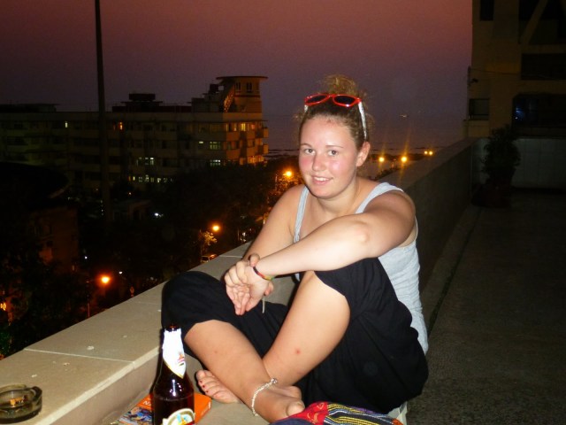 Insofern haben wir erst einmal ein wenig gechillt. Unser Hotelchen hat sogar eine kleine Dachterrasse, von der wir, wenn wir uns ganz weit über das Geländer beugen, das Meer sehen können. Oben stehen ein paar wenige Stühle, ansonsten hockt man sich einfach auf die Mauer und guckt von dort aus auf die Straße. Die Leute sind wieder einmal entzückendst und das Zimmer wirklich groß und sogar mit einem Fernseher. Tee und ein kleiner Snack wurde uns auch gleich serviert! Hannah hat sich platt wie sie war nach dem Chai erst einmal auf’s Bett geschmissen und eine Folge „Full House“ geglotzt. Zwar auf indisch, aber das war egal :).