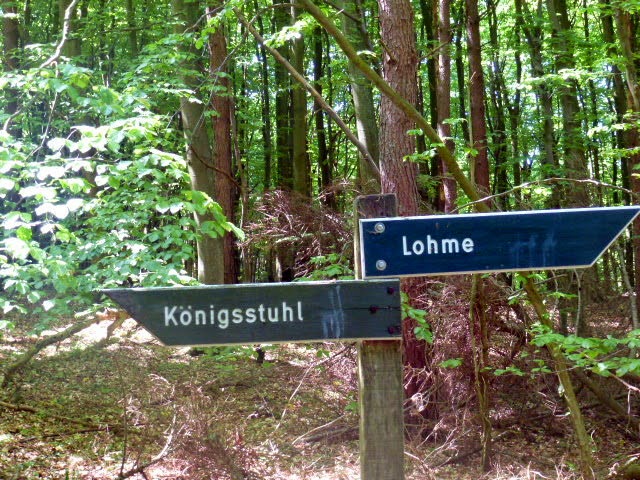 Rechts befindet sich eine Beschilderung „Königsstuhl“. Dieser folgt ihr immer weiter. Eigentlich könnt ihr euch nicht verlaufen, falls das doch passieren sollte: Immer auf die Baummarkierungen mit dem blauem Balken achten!