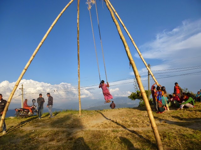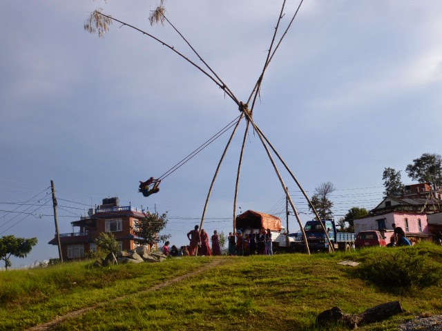 Anlässlich von dem Fest gibt es (bis heute Abend) so etwas wie einen kleinen „Jahrmarkt“ in dem Dorf. Das „Karusell“ besteht aus einer großen Schaukel genau an der höchsten Stelle des Dorfes (und damit genau vor unserer Terrasse). Großes Hallo, als wir uns gestern dazu setzten und die Leute beobachteten.