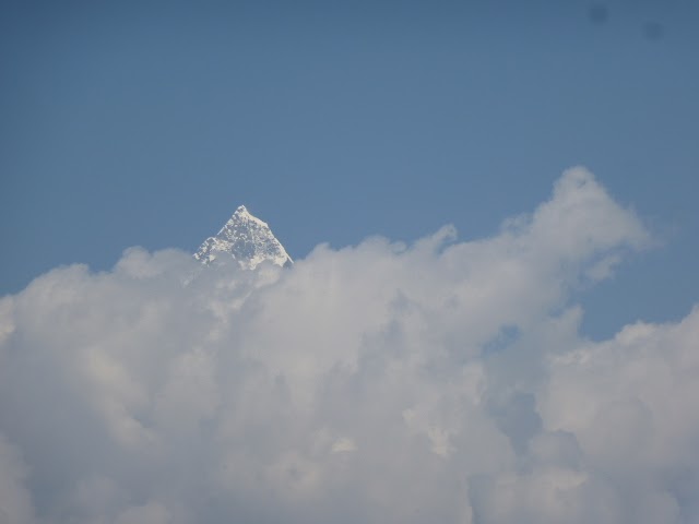 Eine alte Dame, die jeden Morgen 3 Stunden aus den Bergen nach Pokhara herunter gelaufen kommt und am See Äpfel und Papaya an die Touristen verkauft, erzählte mir, dass die Berge der Sitz der Götter sind!