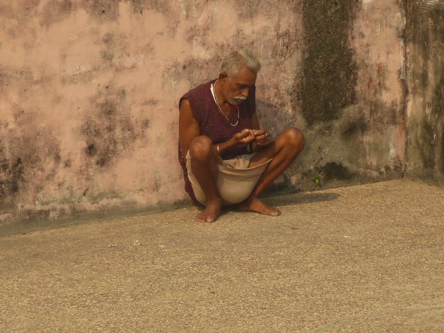 Allerdings muss man meiner Meinung nach schon sehr esoterisch oder gläubig sein oder ganz bestimmte Pillen genommen haben, um das alles nur toll zu finden :). Ich habe sogar einen Touristen gesehen, der vor den Verbrennungsghats in der Asche (und damit wahrscheinlich auch auf den übrig gebliebenen Knochen) ganz entspannt im Hier und Jetzt gesessen und meditiert hat! In kurzen Hosen!