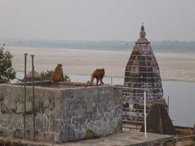 Überall – wirklich überall – flitzen Affen herum! Auf den Straßen, auf den Dächern, auf den Balkonen, an den Ghats …. überall!