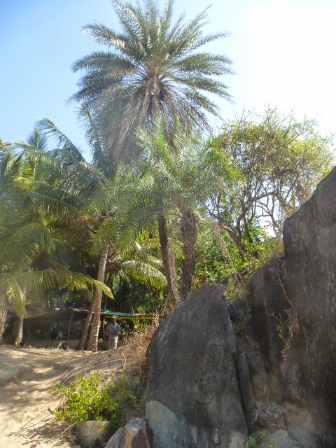 Man erreicht diesen bequem per Boot (300 Rupien für eine einfache Fahrt). Wer das nicht zahlen will muss ca. 30 Minuten über die hohen Felsen in die nächste Bucht klettern.