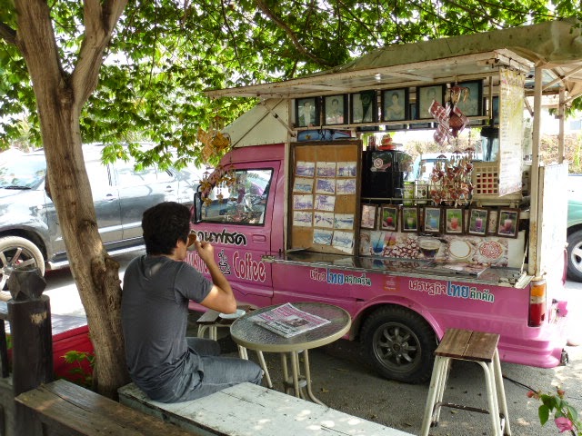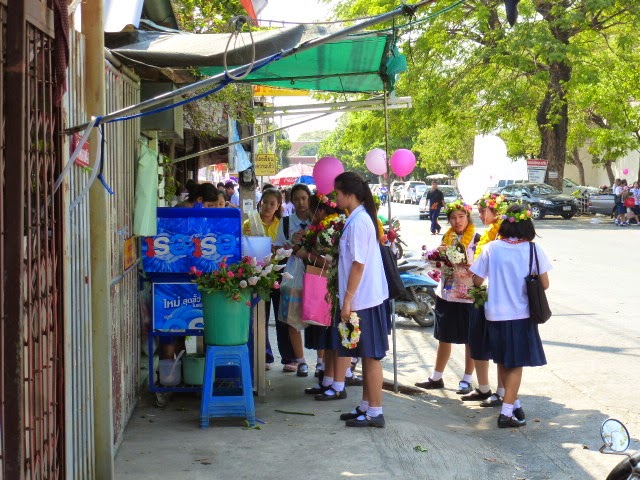 Getränkeverkäufer und Essensverkäufer drängten sich durch den Zug, alle Thais waren am Futtern und Trinken. Schulklassen bevölkerten bei der Rücktour die Abteile, Mönche nahmen auf den für sie reservierten Bänken Platz und palaverten.