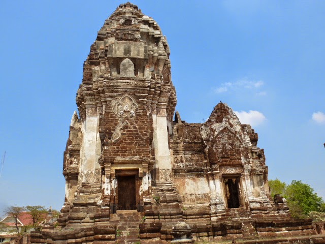 Da es jeden Tag heißer und heißer wird, haben wir unser Besichtungsprogramm in Lopburi auf eine einzige kulturelle Aktivität reduziert. Der Wat Phra Si Ratana Mahatat liegt genau gegenüber dem Bahnhof und ist damit nicht zu verfehlen.