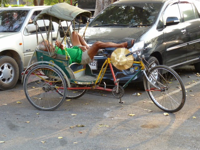 Es gibt nur Fahrradrikschas (eigentlich gar nicht mehr üblich in Thailand), es gibt keine Restaurants, sondern nur Essensstände und es gibt ein paar Tempel, die den Besuch lohnen. That’s it!