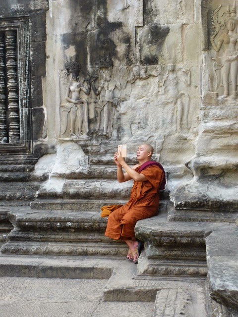 Es gibt sie nämlich noch, die vielbeschworene Spiritualität von Angkor! Man muss sich nur Zeit nehmen! Und schon gar nicht mit den vielen Besuchern – vielleicht sogar noch zu Sonnenaufgang – im Strom schwimmen.