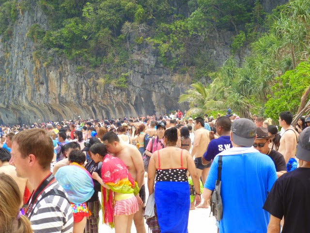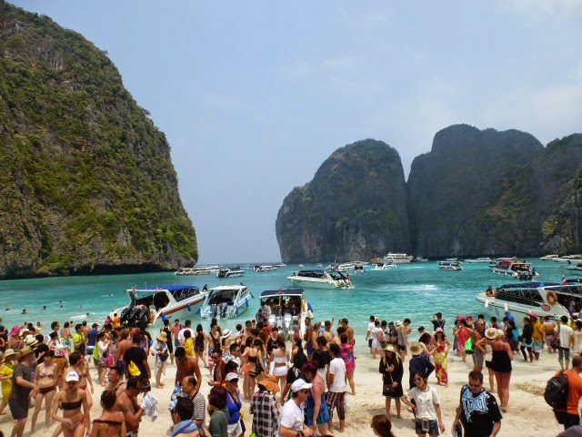 Aber spätestens nachdem Leonardo di Caprio als Richard auf der Suche nach seinem Paradies kiffend an diesem Strand saß, erlebte diese Bucht einen Kollaps und wird seitdem von Menschenmassen heimgesucht. Ein anderes Wort als heimgesucht fällt mir leider nicht ein, denn es ist wirklich ein Desaster …