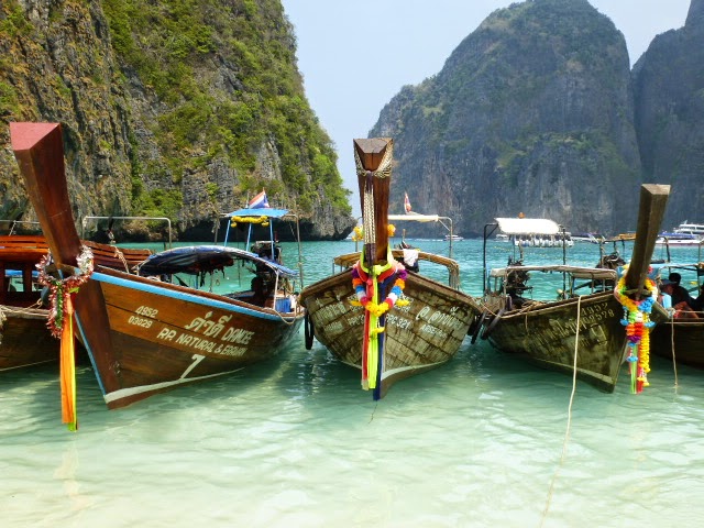 Die Bucht war nie „unbekannt“! Schon lange vor der Verfilmung des Buches „The Beach“ von Alex Garland im Jahre 2000 wurde über diesen Strand geredet. Und auch damals gab es schon Longtailbootfahrten zur Maya Bay!