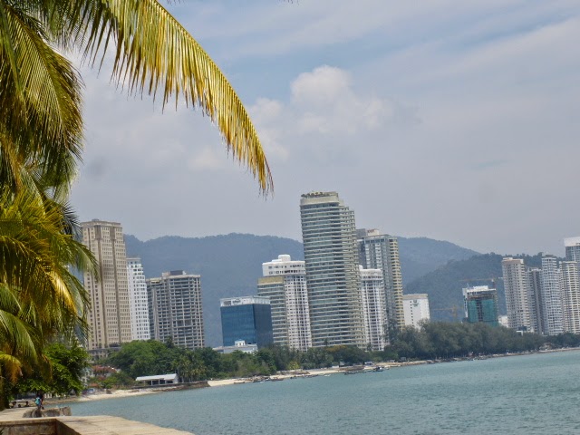Penang ist – jedenfalls auf den ersten Blick – ganz anders als Langkawi. Hochhäuser beherrschen das Bild und das Wasser ist grau und trüb (was allerdings auch am derzeitigen Wetter liegen kann).