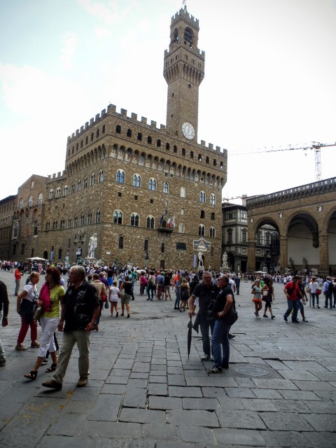 Fast ebenso überlaufen wie der Domplatz ist die Piazza della Signoria mit dem Palazzo Vecchio (dem Rathaus) und der Loggia dei Lanzi.