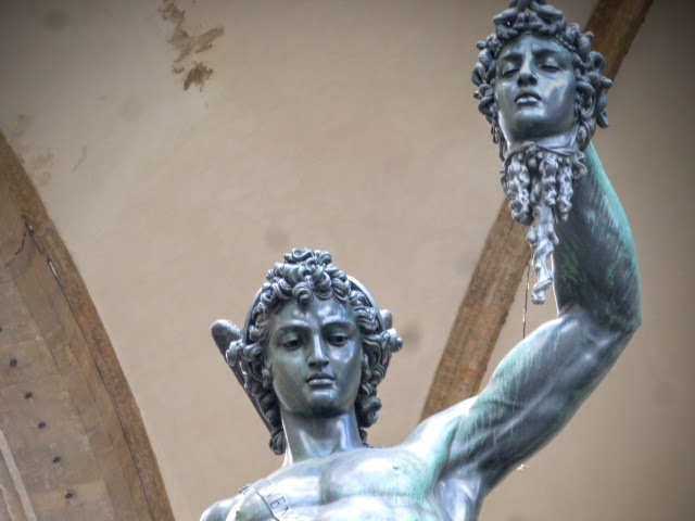 Das bekannteste ist sicherlich der „Perseus“ von Benvenuto Cellini, bei dem Perseus den noch blutbesudelten Kopf der Medusa in der Hand hält.