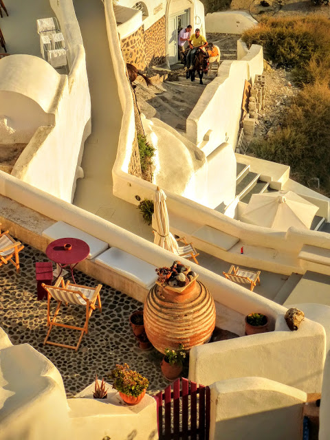 Mit Bussen, Schiffen, Eseln, Mopeds, Quads, Autos, per pedes machen sich (gefühlt) sämtliche Besucher der Insel auf den Weg gen Oia!